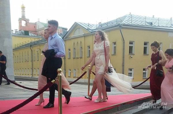 Кремль встретил выпускников-2018. По красной ковровой дорожке вчерашние школьницы и школьники в вечерних платьях и костюмах прошли в Государственный Кремлёвский Дворец.