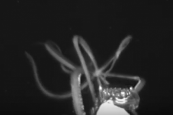 Отмечается, что кадры были сделаны на глубине 759 метров. На них запечатлено, как моллюск пытается обвить своими щупальцами глубоководный аппарат. Про словам ученых, животное не представляет никакой опасности.